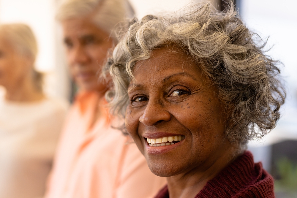 Close-up,Portrait,Of,Cheerful,African,American,Senior,Woman,With,Multiracial